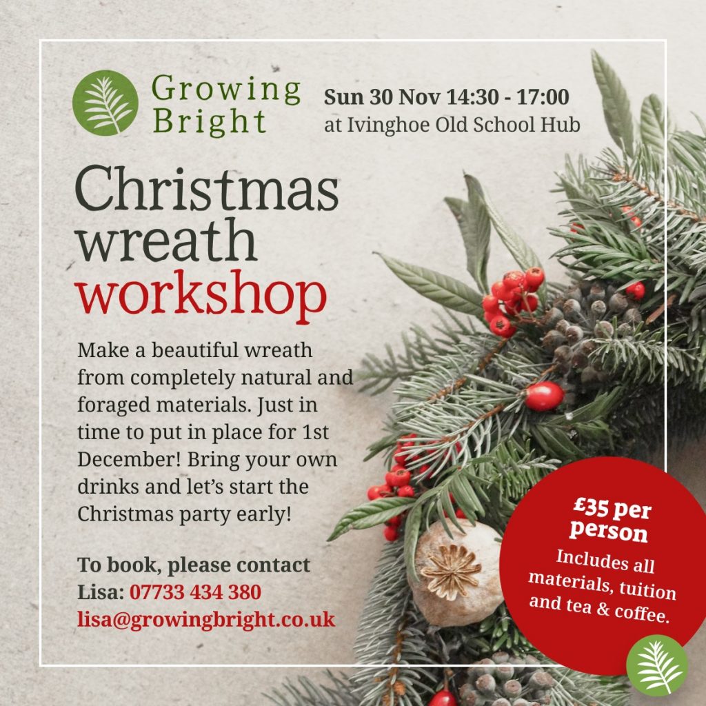 Make a beautiful wreath from carefully foraged natural materials. Just in time to put in place for the start of December! Bring your own drinks and let’s start the Christmas party early!